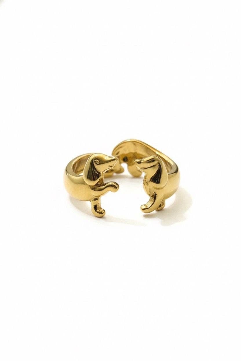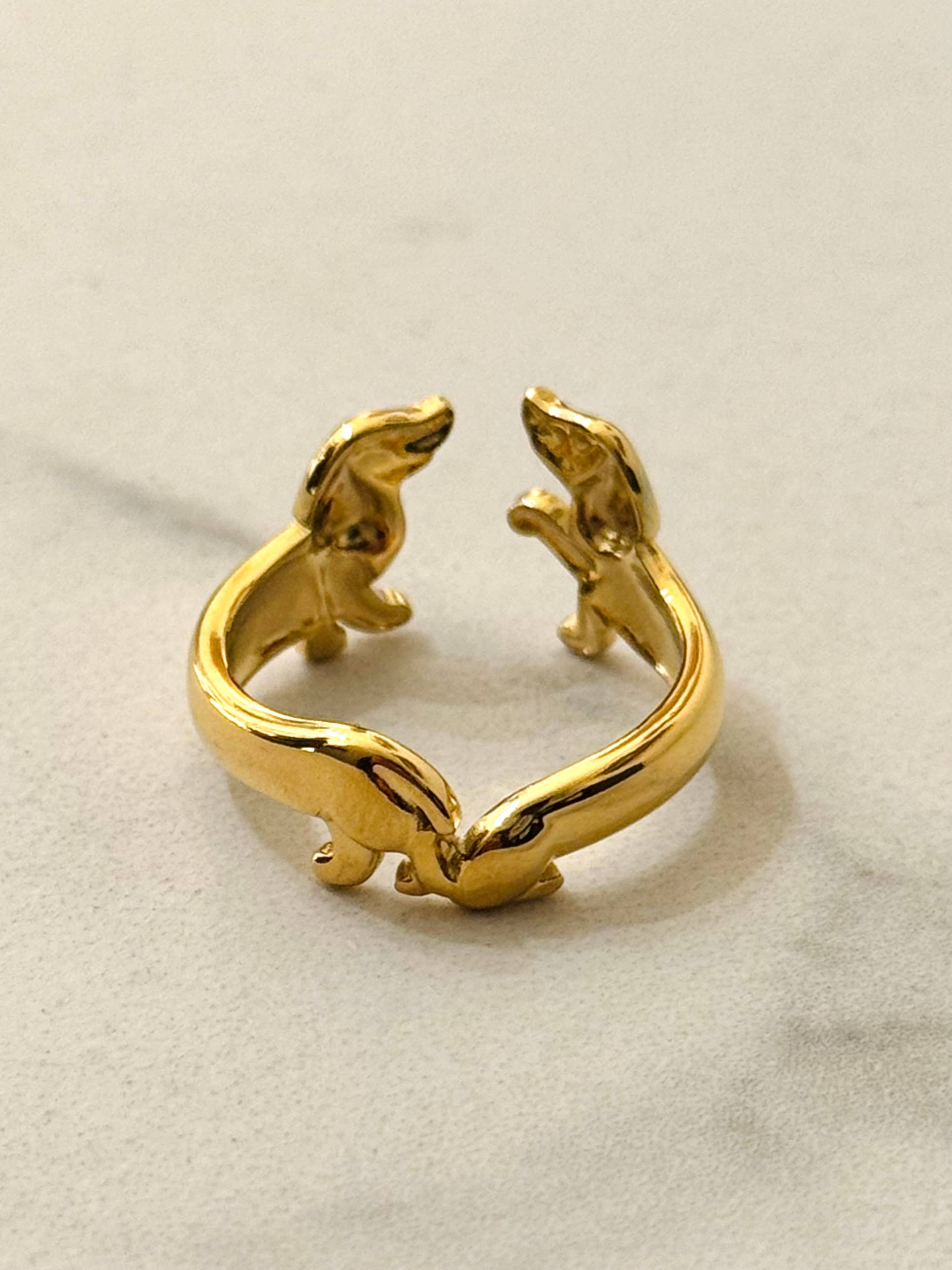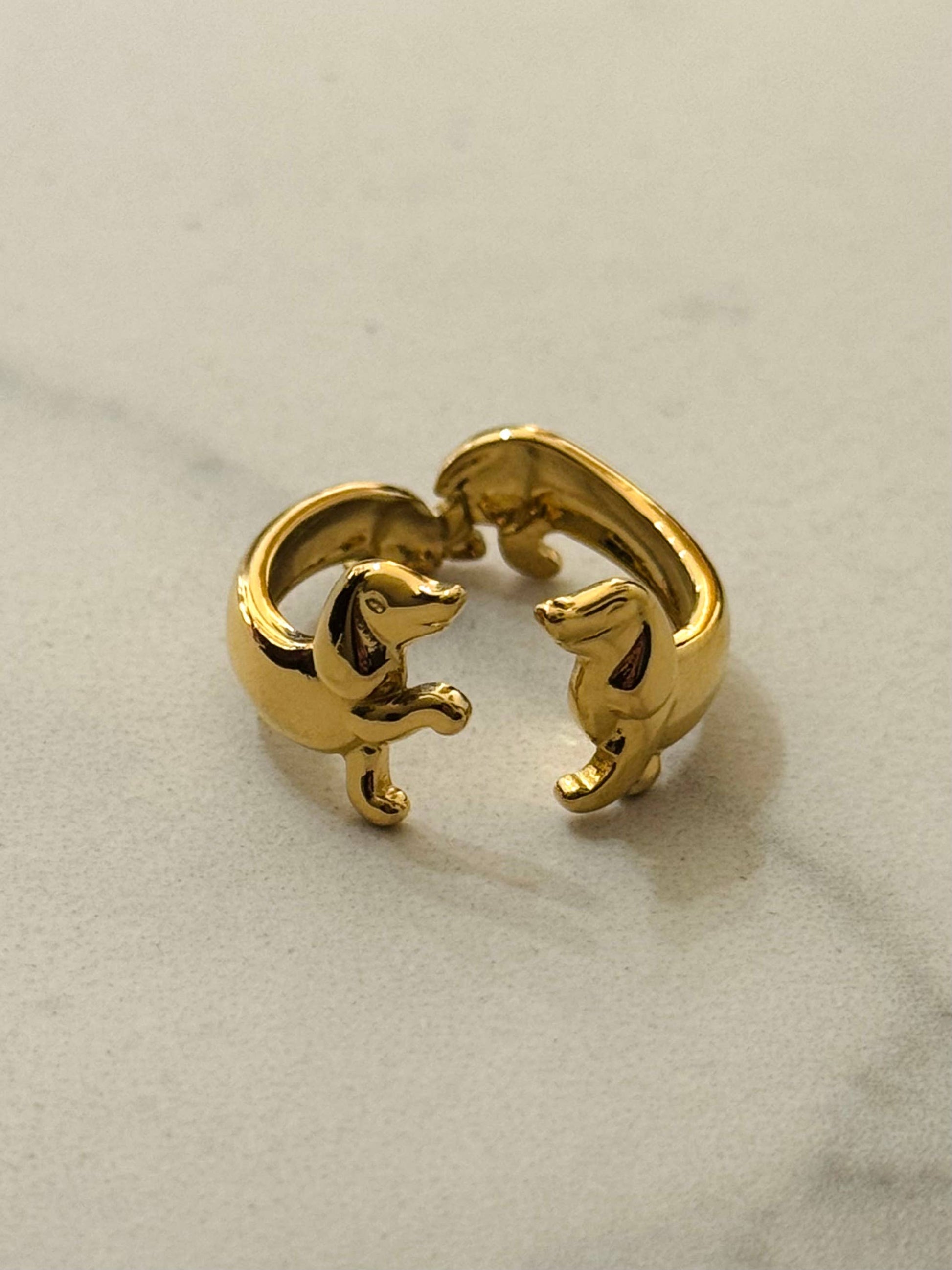 KASSETTE - Doppel-Dackel-Tour-Ring Farbe: Gold Material: Edelstahl (14k vergoldet) WASSERDICHT Größe verstellbar Nickel- & bleifrei (HYPOALLERGEN)