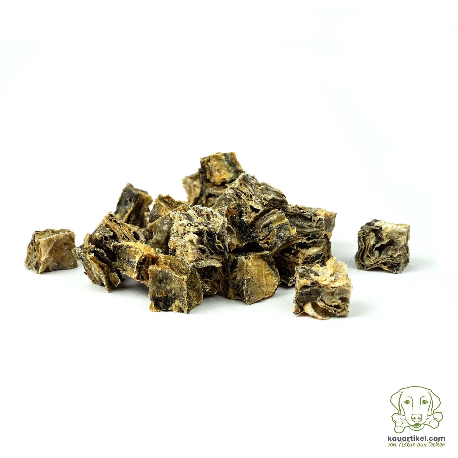 Unsere natürlichen Kabeljau-Würfel für Hunde bestehen zu 100% aus Kabeljau/Dorsch und werden ohne Zusätze in kleine Würfel gepresst bzw. aus dem Fleisch geschnitten und daraufhin schonend getrocknet. Sie eignen sich also ideal zur Belohnung oder als kleines Leckerli für zwischendurch.
