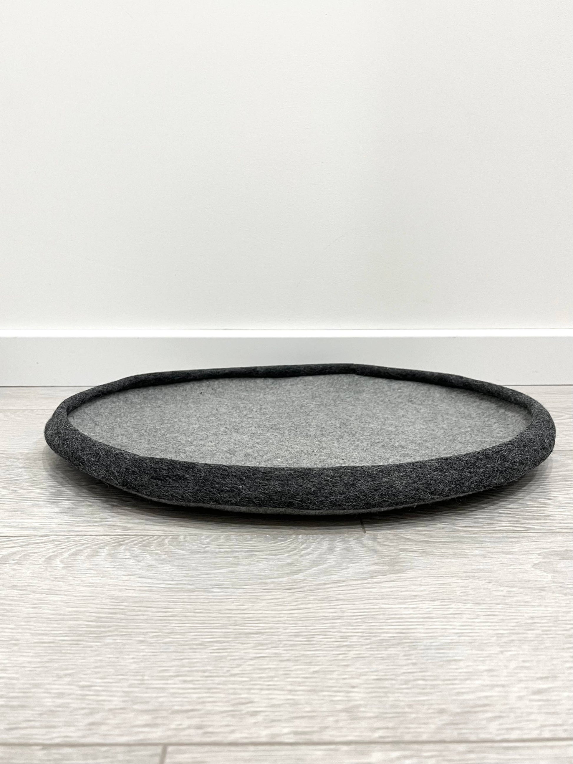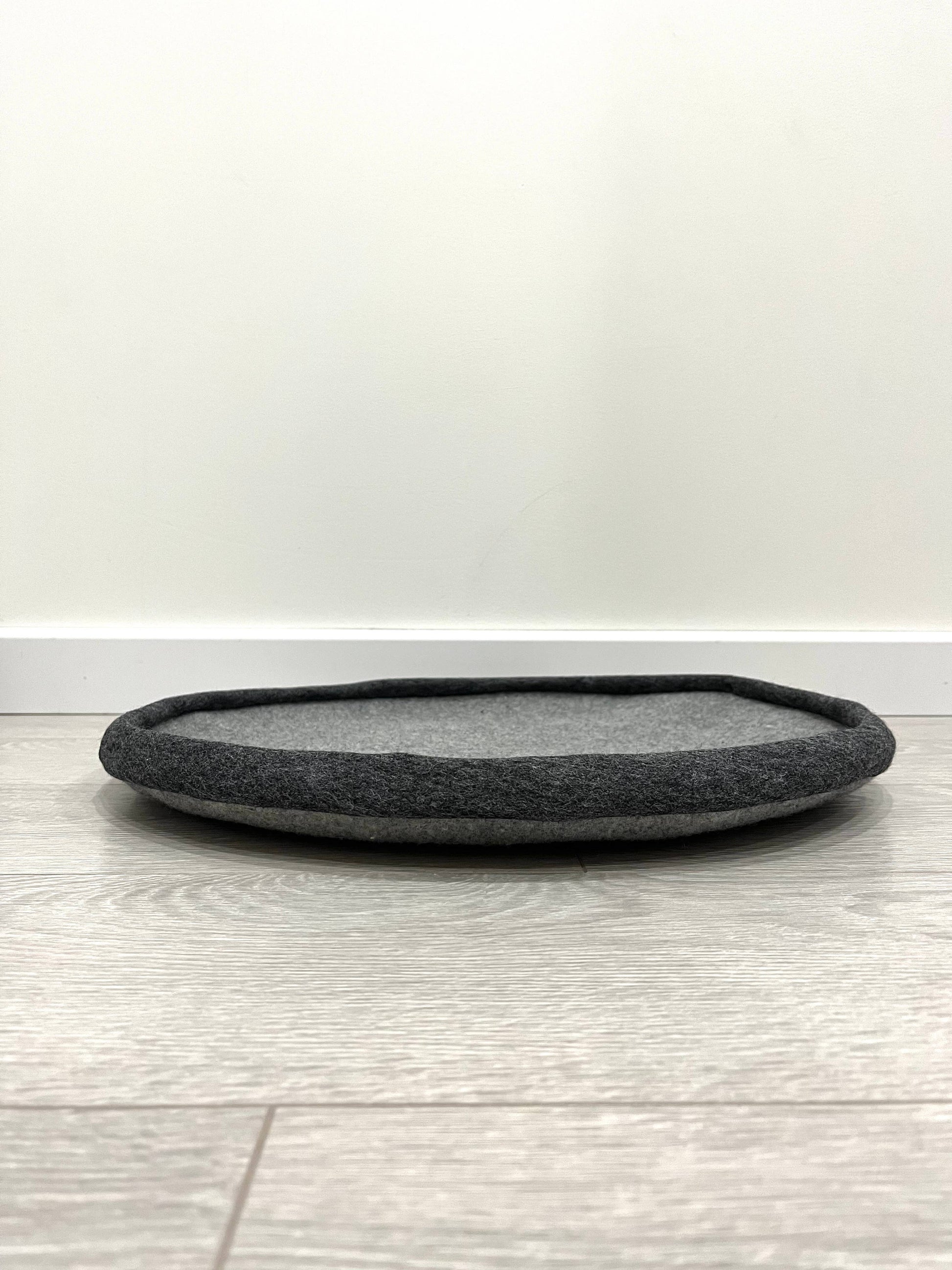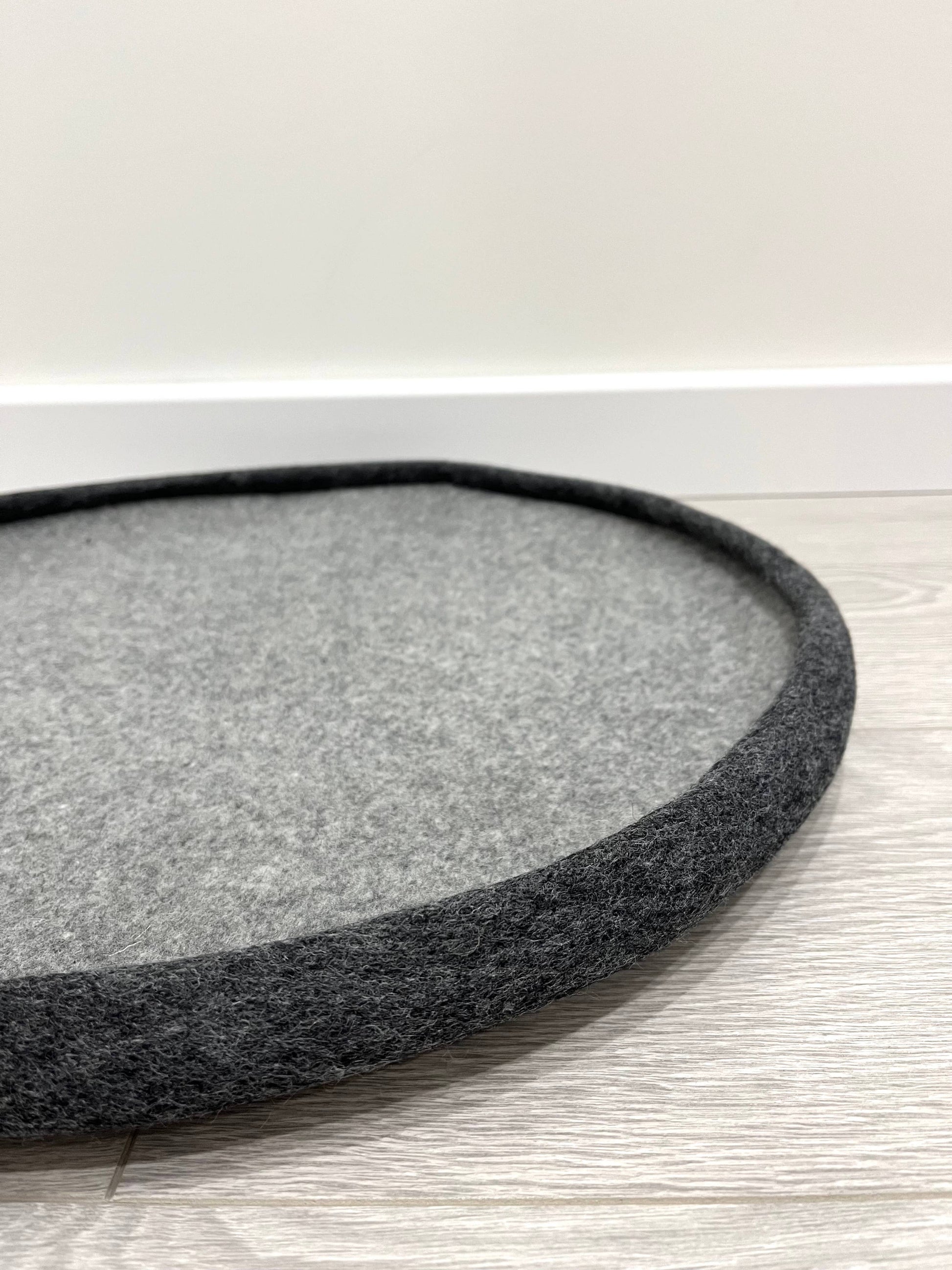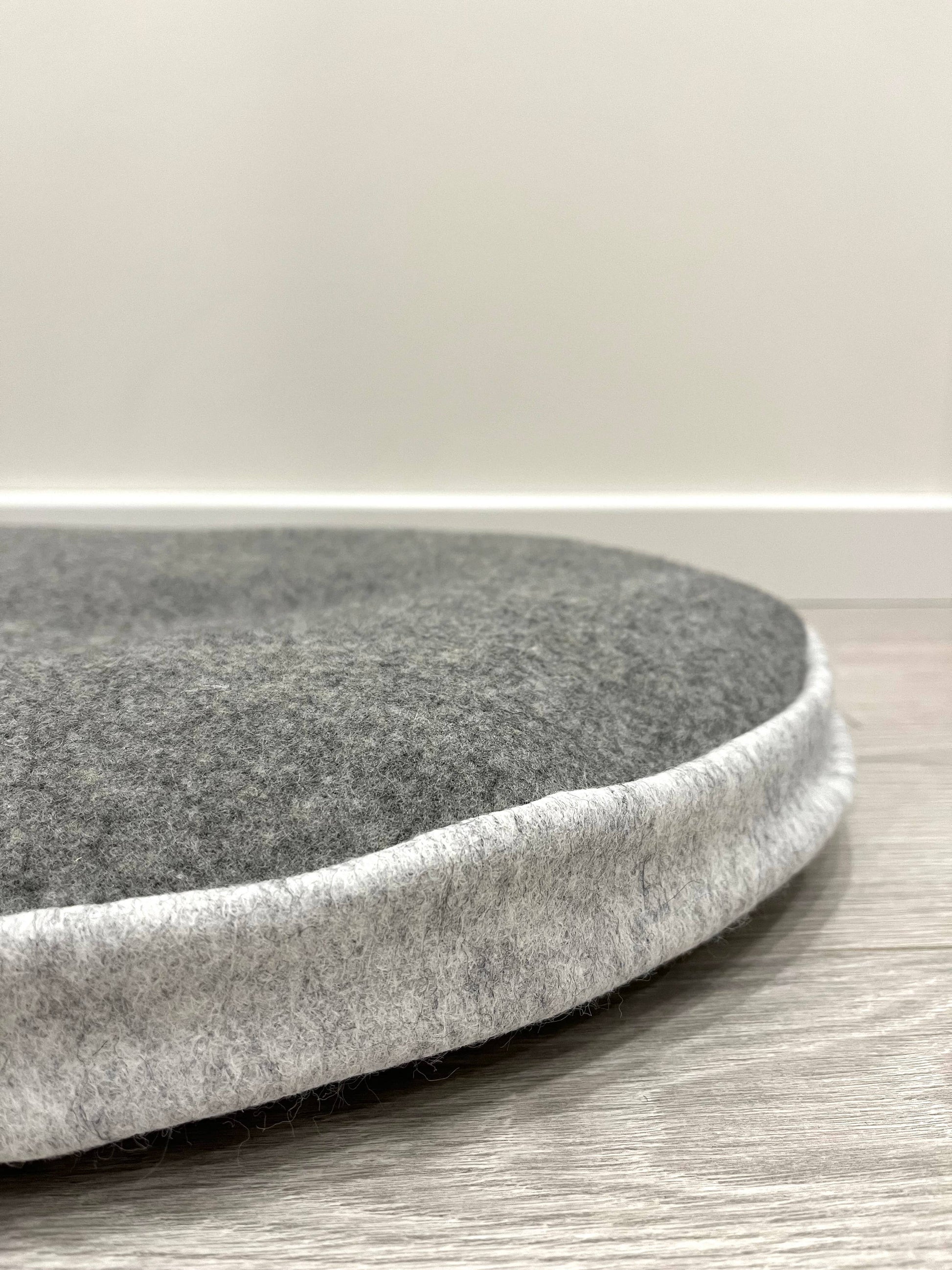 MATERIALIEN: - Grauer Filzteil 40% hochwertige natürliche dicke Wolle (Doppelschicht) und 60% Polyester. - Helle und dunkle graue Seiten 100% natürliche Wolle.